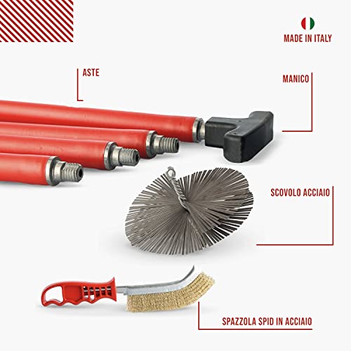 BARETTO - Kit per la Pulizia del Camino - Prolunga Fino a 10 Metri, Curvatura Massima 45° - Scovolo in Acciaio da 200mm - Facile Utilizzo, Non Necessita di Attrezzi Aggiuntivi