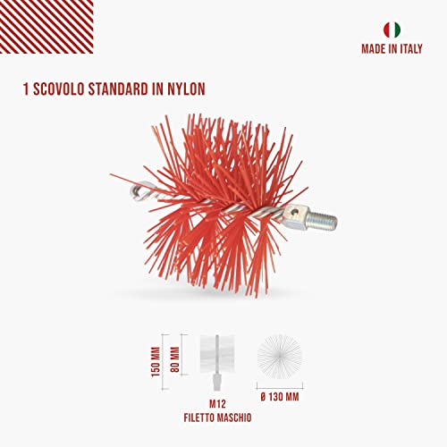 BARETTO Scovolo Ricambio per Kit per Pulizia del Camino - per Canne Fumarie con Tratti Lineari o Curve Massime di 45° - 1 Scovolo in Nylon da 130mm