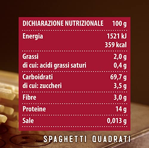BARILLA SPAGHETTI QUADRATI AL BRONZO: gli spaghetti quadrati Al Bronzo offrono un'esperienza di gusto intensa. Una pasta spessa e corposa, trafilata al bronzo con il metodo Lavorazione Grezza