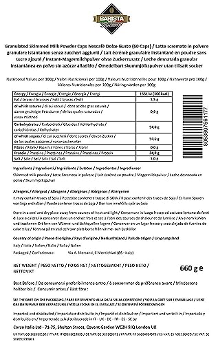 Barista Italiano - Capsule Latte Scremato 60 Capsule Compatibili Dolce Gusto (Latte Scremato, 60 Capsule, 60 Porzioni)