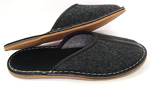 BARJA - Pantofole in feltro, comode, in due versioni, Nero con suola in gomma., 44 EU