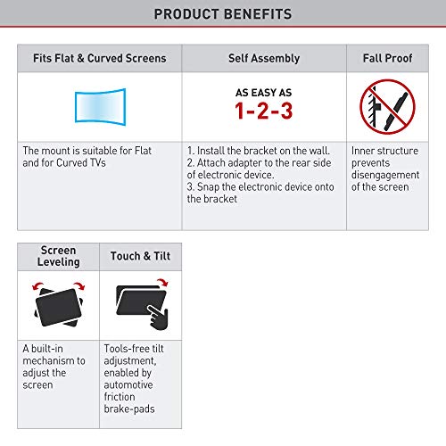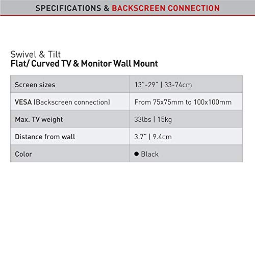 Barkan E120 - Supporto da parete orientabile e inclinabile fino a 100 x 100 mm, per TV a schermo piatto da 15 a 29", 38-74 cm
