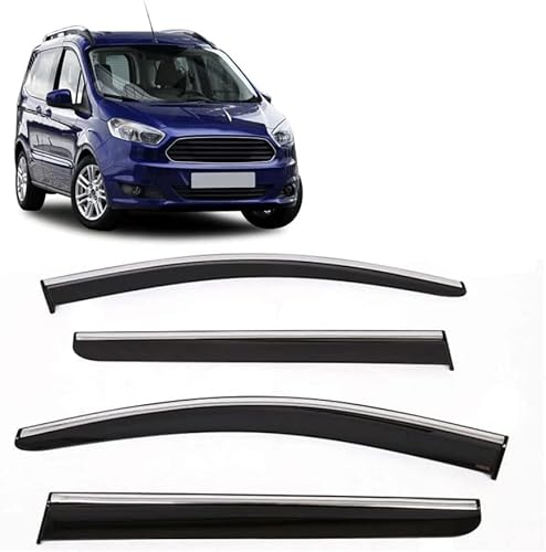 BARLAS STORE Deflettore laterale per deflettore d'aria con piastra cromata, colore nero, 4 pezzi per Ford Tourneo Courier 2014 2015 2016 2017 2018 2019 2020 2021