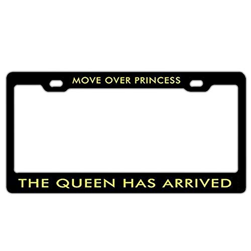 Barnettplate frames Americano Nero Targa di immatricolazione per Donne/Uomini, 2 Fori Porta Matel Targa Telaio in Alluminio + Cromo Tappi a Vite, Move Over Princess The Queen Has Arrived