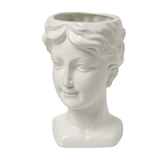Baroni Home Vaso in Ceramica Testa di Ragazza, Statua Mezzo Busto in Stile Classico, Portapenne, Soprammobile 16X15X23 cm