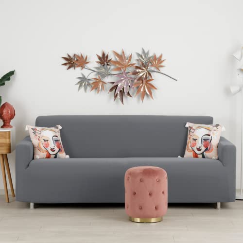 Baroni Home Copridivano Elasticizzato Tinta Unita, Fodera Antiscivolo per Divano con braccioli, Fantasia Grigio, 3 Posti