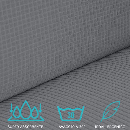 MATERIALE - La fodera per divano è composta 95% di fibra di poliestere e al 5% di fibra elastica (spandex). È super morbida ed elastica, delicata sulla pelle e traspirante. Realizzata in Italia, con materiali eccellenti e di lunga durata. Il fondo del copridivano ha un elastico antiscivolo che aiuta a mantenerlo fermo senza che si sfili continuamente.
