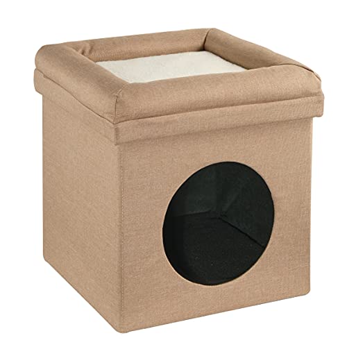 Baroni Home Cuccia Cane, Cuccia Gatto, Pouf Pieghevole per Cani e Gatti Con Cuscino Sopraelevato, Colore Tortora, Misure 38x38x42 cm