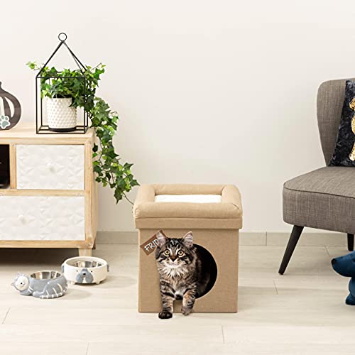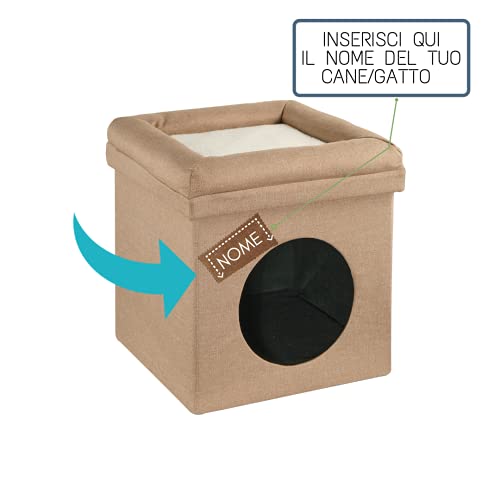 Baroni Home Cuccia Cane Personalizzabile, Cuccia Gatto Personalizzabile, Pouf Pieghevole per Cani e Gatti Con Cuscino Sopraelevato Personalizzabile, Misure 38x38x42 cm Tortora