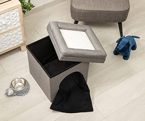 Baroni Home Cuccia Cane Personalizzabile, Cuccia Gatto Personalizzabile, Pouf Pieghevole per Cani e Gatti Con Cuscino Sopraelevato Personalizzabile, Misure 38x38x42 cm Grigio