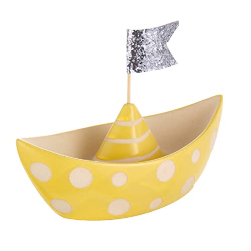 Baroni Home Decorazione in Ceramica, Soprammobile Moderno, Statuetta da Interno o Esterno a forma di Barchetta Gialla a Pois, 23X10X19 cm