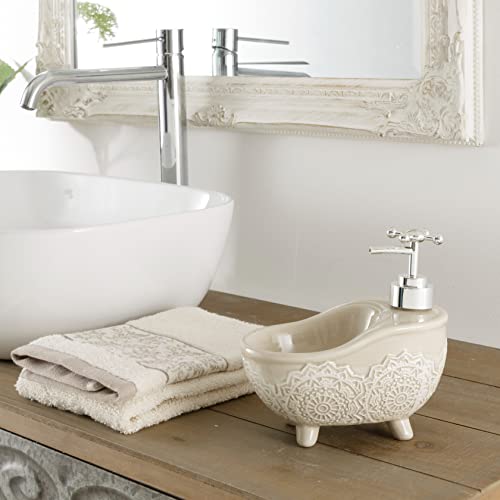 Baroni Dosatore Sapone Dispenser in Ceramica Bianca a forma di Vasca da Bagno, Dispenser Porta saponetta in Porcellana, Porta Sapone Liquido, 16X10X15 cm