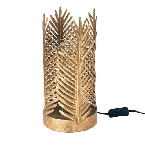 Baroni Home Lampada da Tavolo Dorata in Ferro, Lampada da Comodino di Design, Abat Jour Colorata Oro, Palma, 13X13X28.5 cm
