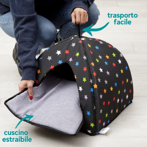 Baroni Home Lettino Cuccia Cane Gatto a Piramide Stelle, Cuscino imbottito, lavabile 40x40x36 cm