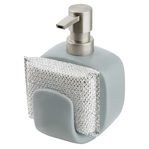 Baroni Home Linea Bagno Modern Dosatore Sapone Liquido Bagno Cucina Porta Sapone Liquido con Spugna Dispencer, 10x9,5x15 cm, Blu Avio...