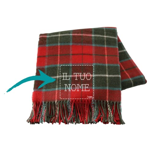 Baroni Home Plaid PERSONALIZZABILE in Misto Lana Cotone Righe Rosso e Verde, Plaid Divano, Coperta Made in Italy 130x170 cm