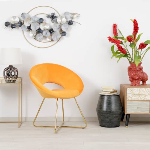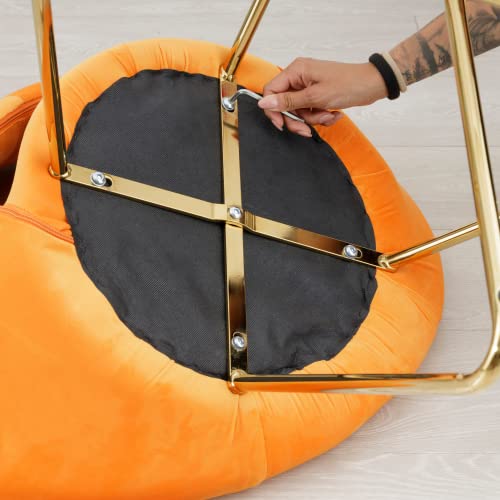 Baroni Home Poltrona Imbottita Circolare con gambe in Ferro dorato, Poltroncina da Ufficio o Sedia da pranzo Confortevole con Seduta Ergonomica 71x59x84 Cm, Arancione