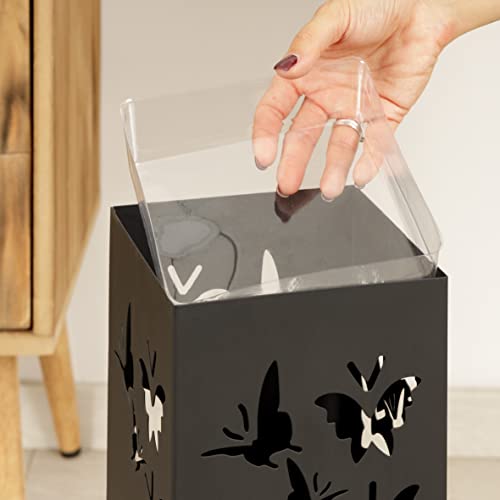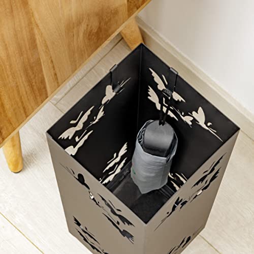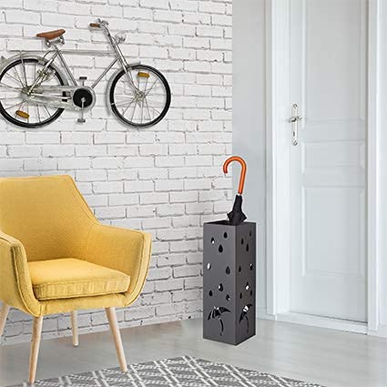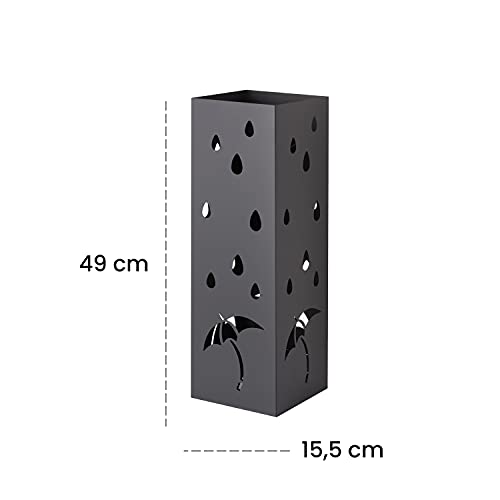 Baroni Home Portaombrelli Design Porta Ombrelli Moderno in Metallo con Intaglio Pioggia Ombrelli Nero con Gancino e Vaschetta Scolapioggia Rimovibile 15,5X15X49 cm