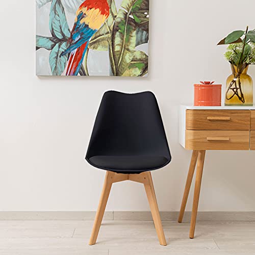Baroni Home Sedia da Pranzo o Ufficio con Gambe in Legno, Sedia Ergonomica con Cuscino Integrato 50X48X82 cm (4, Nero)