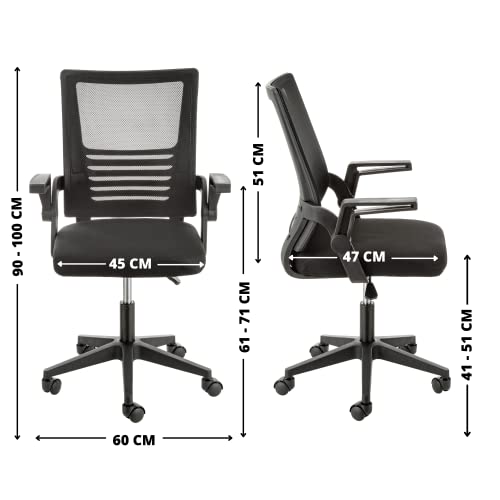 Baroni Home Sedia da Ufficio Imbottita Girevole, Poltroncina da Ufficio con Altezza Regolabile e Braccioli Mobili, Seduta Ergonomica, Nera