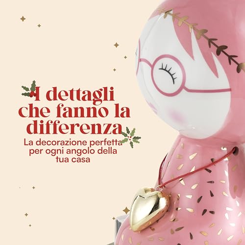 Baroni Home Soprammobile Natalizio Dipinto a Mano, Decorazione a tema Natale, Statuetta da Interno e Esterno in Ceramica, Rosa, 12X11X20 cm