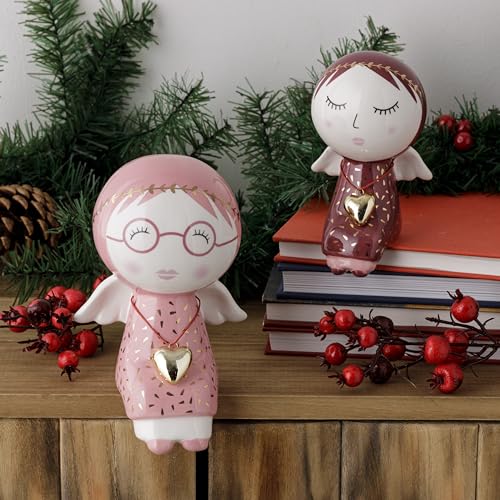 Baroni Home Soprammobile Natalizio Dipinto a Mano, Decorazione a tema Natale, Statuetta da Interno e Esterno in Ceramica, Viola, 8X8X15 cm