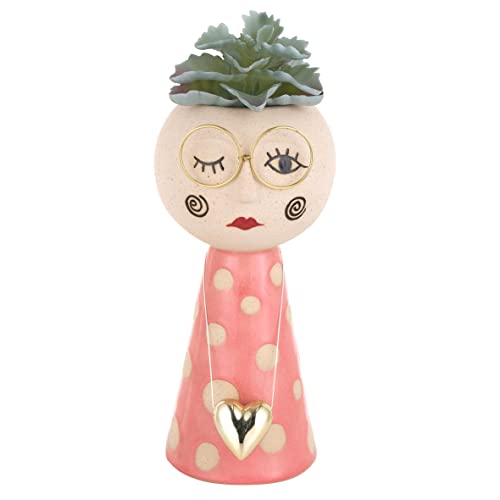Baroni Home Vaso Testa in Ceramica con Volto, Vaso con Pianta Artificiale Inclusa, Soprammobile Moderno Dipinto a Mano, Statuetta da Interno o Esterno 13x12x30 cm - Collana a Cuore