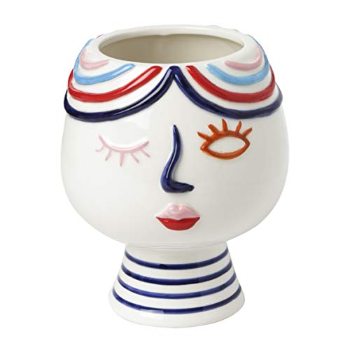 Baroni Vaso Testa in Ceramica Volto Pop, Soprammobile Moderno Panciuto da Interno ed Esterno 13X13X16 cm