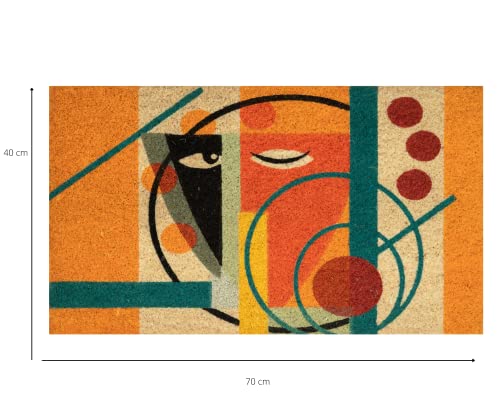 Baroni Zerbino da Esterno in Cocco con Base in PVC Dipinto a Mano, Facile da Pulire e Ultraresistente, Raffigurante Volto toni Arancioni, 70x40x3 cm