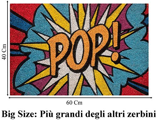 Baroni Home Zerbino da Esterno in Cocco con Base in PVC Dipinto a Mano Raffigurante Pop Art Smash 60X40X2 cm. Facile da Pulire e Ultraresistente