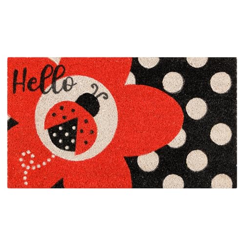 Baroni Home Zerbino Ingresso Casa tema Coccinella in Cocco Dipinto a Mano 70x40 cm, Tappetino Ingresso Facile da Pulire e Super Resistente