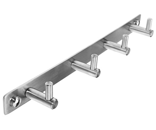 Barra appendiabiti da parete in acciaio inox spazzolato con 4-8 ganci, 4 Hooks