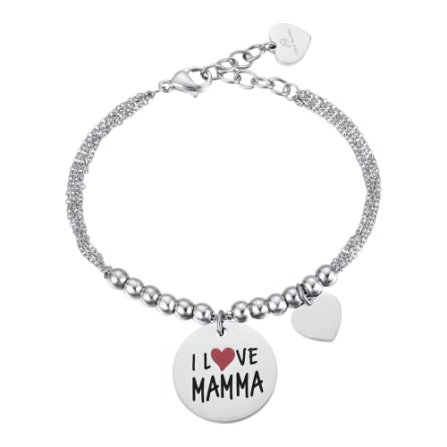 Luca Barra Bracciale da donna Bracciale in acciaio i love mamma. Lunghezza: 16 + 3 cm. Diamtetro piastra: 20mm. La referenza è bk2043