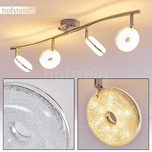 Barra Spot Donot 4 faretti LED in metallo di colore nichel opaco, Luce calda 3000 Kelvin, 24 Watt, 2400 Lumen, Faretti inclinabili e orientabili, Lampada da interno er soffitto con braccia regolabili