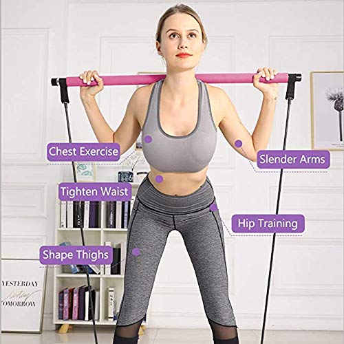 Barra per esercizi Pilates Barra da yoga portatile multifunzione con banda di resistenza Palo elastico regolabile adatto per esercizi fitness perdita peso rosa