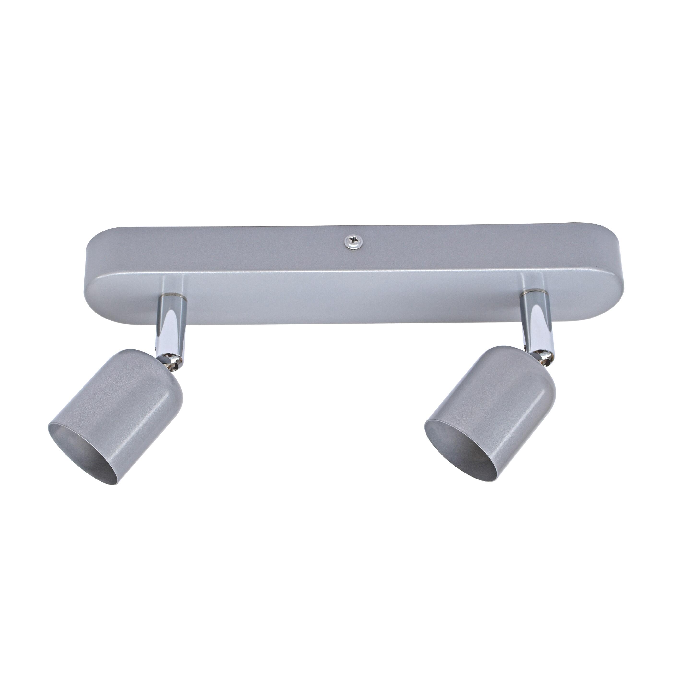 Struttura color grigio, diffusore in metallo colore grigio, dimensioni L 24 x H 9,9 cm, 2 lampadine non incluse, attacco GU10 a baionetta, wattaggio massimo 50 W