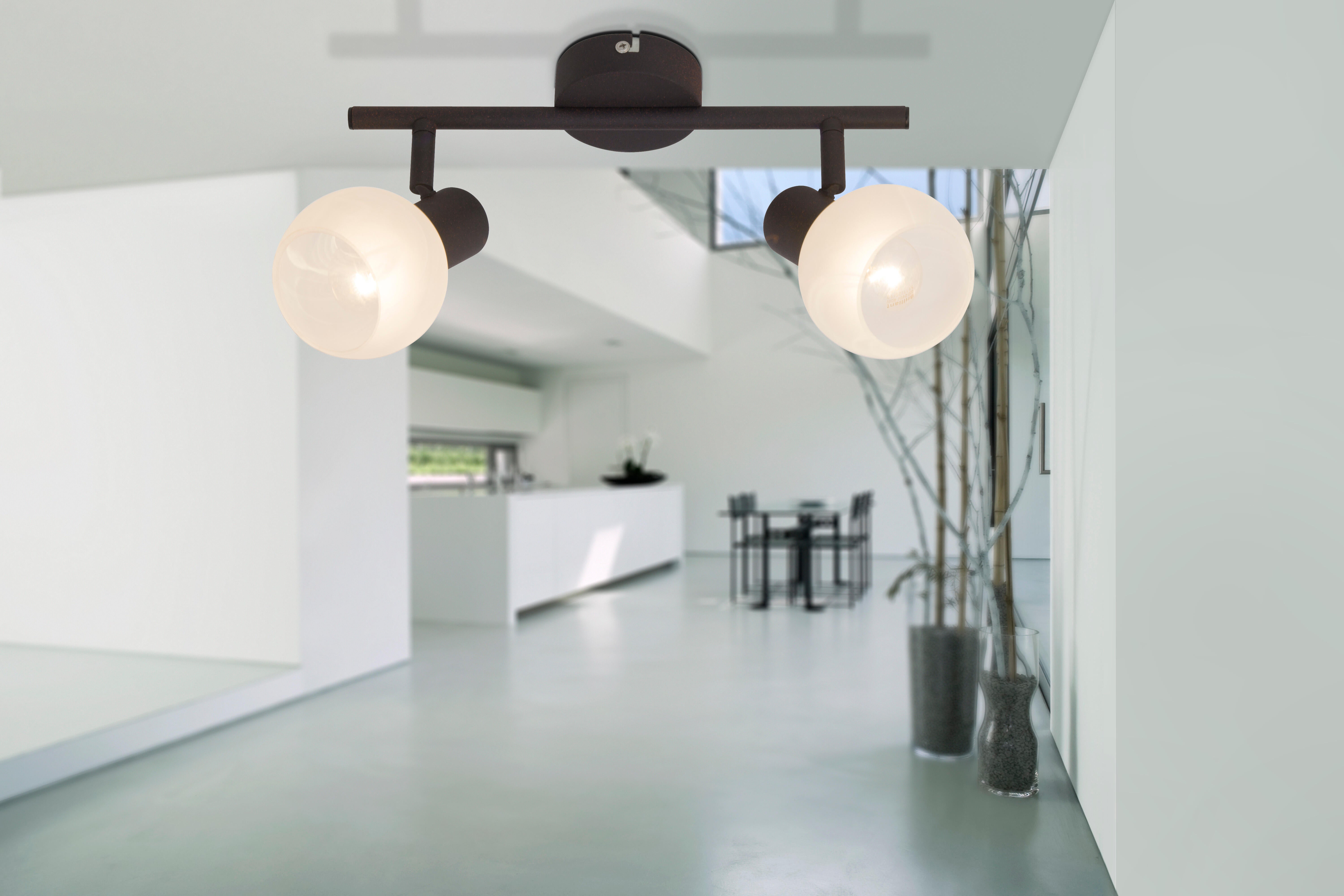 Struttura color bianco, marrone, diffusore in metallo colore marrone, bianco, Ø 8 cm, 2 lampadine non incluse, attacco E14 piccolo, wattaggio massimo 40 W. Consigliato per installazione a parete, puoi orientare facilmente la luce secondo le tue esigenze. 2 lampadine non incluse, attacco E14 piccolo