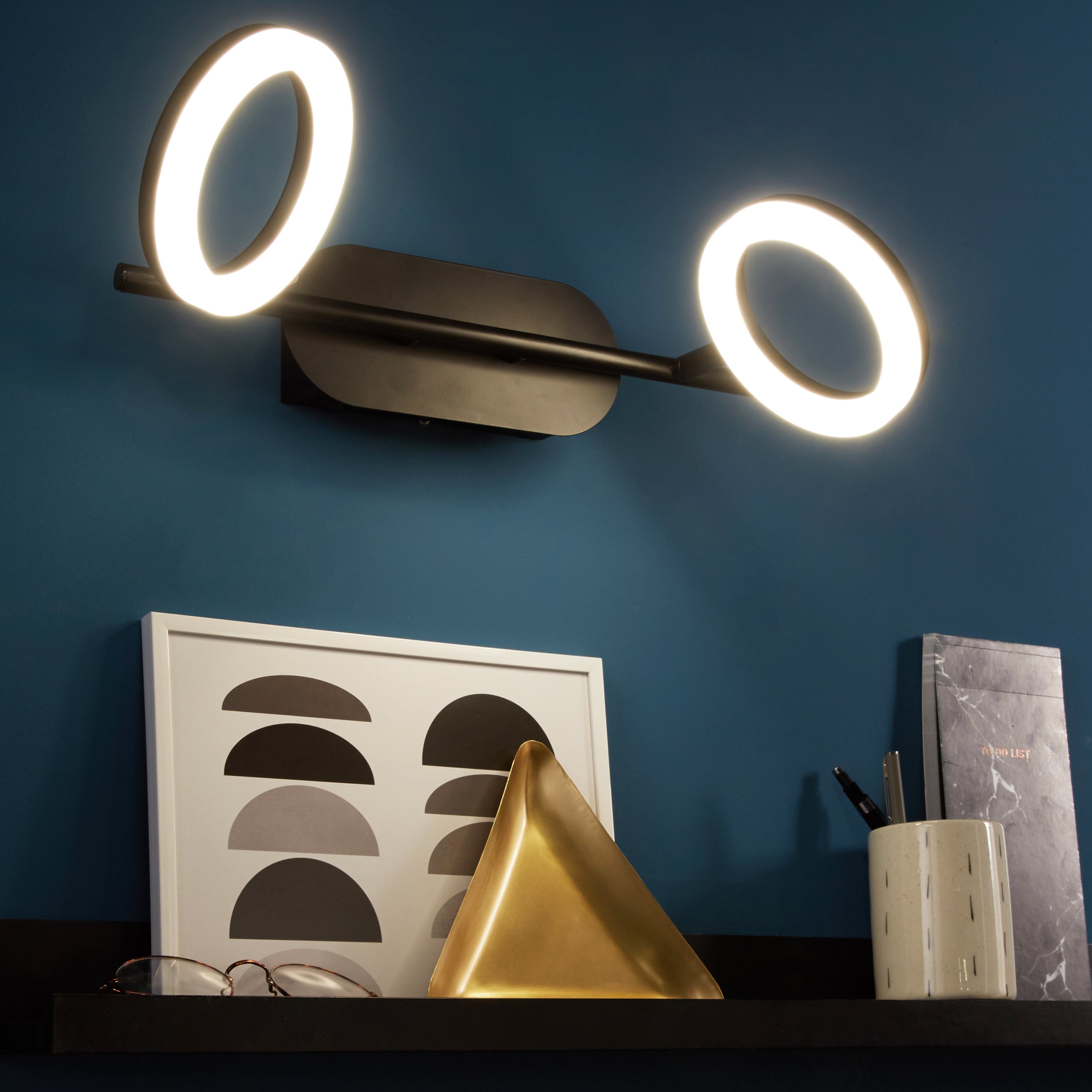 Struttura color nero, diffusore in plastica colore bianco, 2 LED attacco integrato, 5 W, illumina come 55 W di una vecchia lampadina ad incandescenza