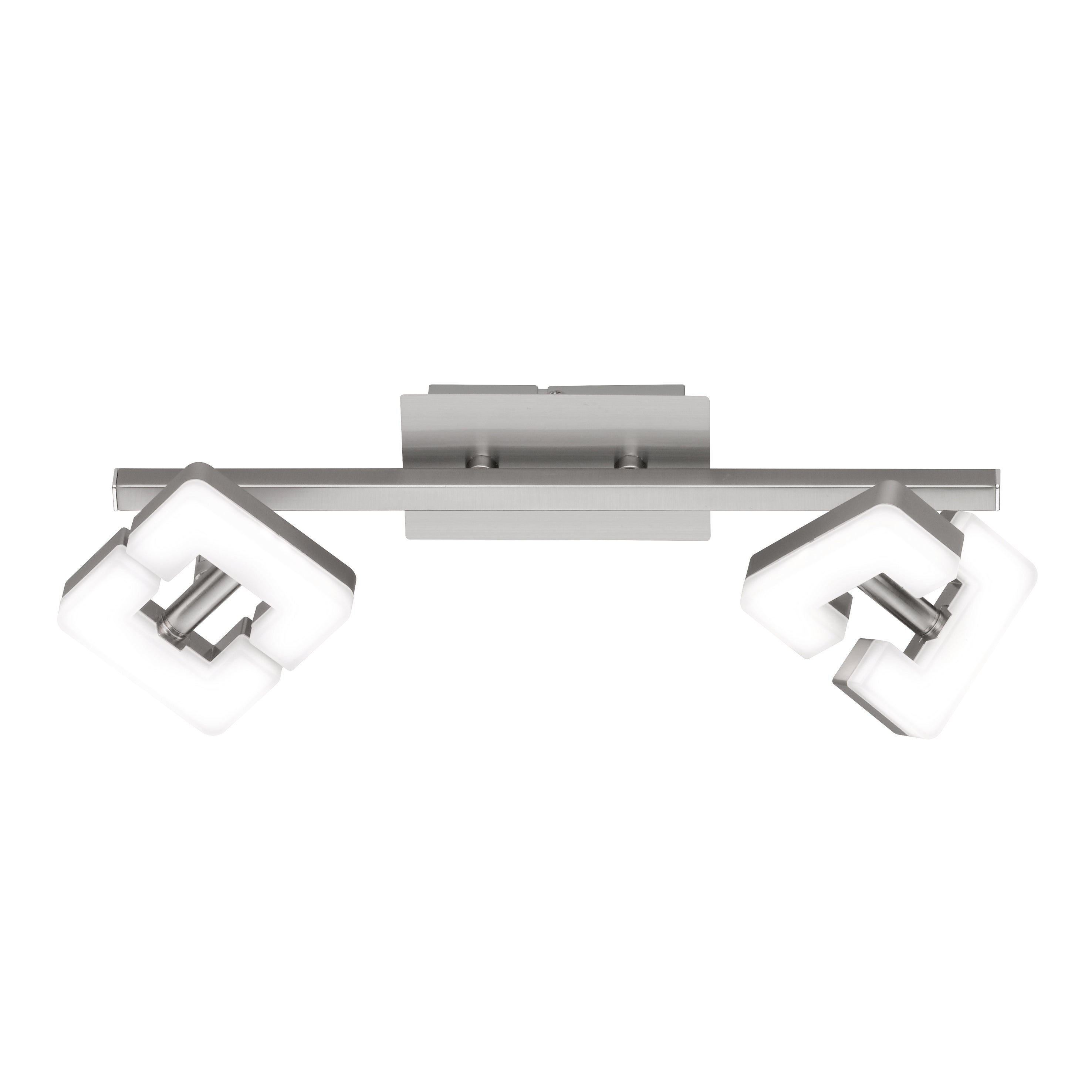 Struttura color nickel, diffusore in plastica colore bianco, Ø 34 cm. Luce diretta e orientabile