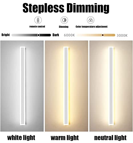 [Applique da parete dimmerabile intelligente] Puoi regolare la luminosità continua e la temperatura del colore (3000K-6000K) con il telecomando come preferisci. La lampada da parete lunga è realizzata in materiale di alluminio di alta qualità con tecnologia antiruggine, resistenza alla corrosione e smalto a fuoco. Il paralume è in acrilico. In generale, questa lampada può essere utilizzata non solo all'interno o all'esterno, ma lascia anche un'impressione di altissima qualità.