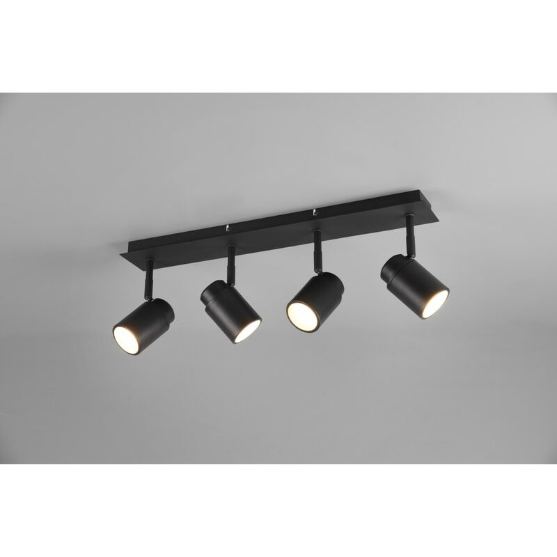 Barra Lineare 4 Faretti Spot Orientabili Metallo Nero La lampada da soffitto Angelo del brand Trio Lighting presenta una montatura lineare interamente in metallo di colore nero con 4 faretti spot cilindrici orientabili. È possibile installare 4 lampadine GU10 da max 5 watt, acquistabili separatamente. L'utilizzo di lampadine a filamento Led garantirà un basso consumo energetico e un'alta resa luminosa. Prodotto certificato IP44, che lo protegge da eventuali schizzi d'acqua. Un faretto spot dal design semplice e dalla forma versatile, ideale per illuminare punti specifici di interesse. Consigliata per diversi ambienti privati o pubblici arredati in stile moderno, come ad esempio una zona living, un ingresso o anche un bagno. Disponibili altri articoli correlati della stessa serie. Caratteristiche: Materiale: Metallo Colore: Nero Numero faretti: 4 Tipologia lampadina: GU10 Potenza massima: 5 watt Protezione: IP44