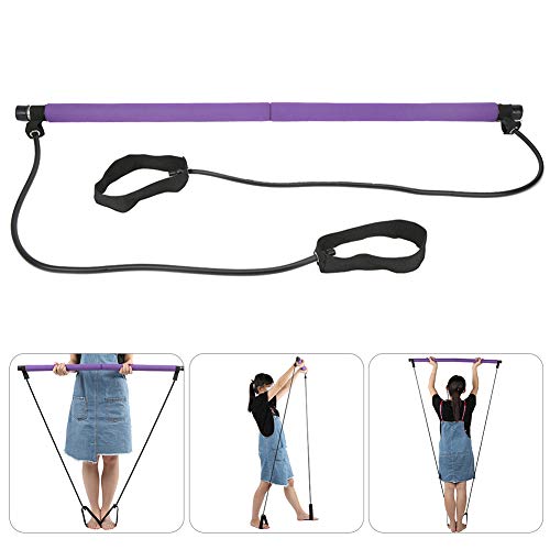 Barra Portatile per Pilates Bastone per Esercizi di Pilates con Foot Loop Cintura Elasticizzata Yoga Antiscivolo Fascia di Resistenza Dimagrante per Yoga, Stretch, Twisting, Sit-Up Bar