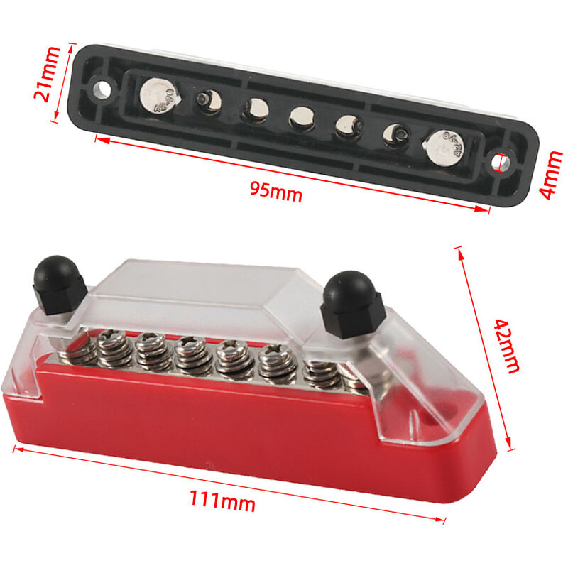 Colore prodotto: rosso Scenari applicabili: camper, yacht, ristrutturazione linea solare Punti di connessione: 2 prigionieri M6 e 6 sonde M4 Materiale metallico: Nichelatura Mace Tensione: 30 ov AC/48 V DC Corrente: 130 A AC/150 A DC Materiale principale: plastica ignifuga< /p> Interasse: 95MM Interasse fori viti: 4mm. Composizione prodotto: sbarra collettrice rossa * 1PZ