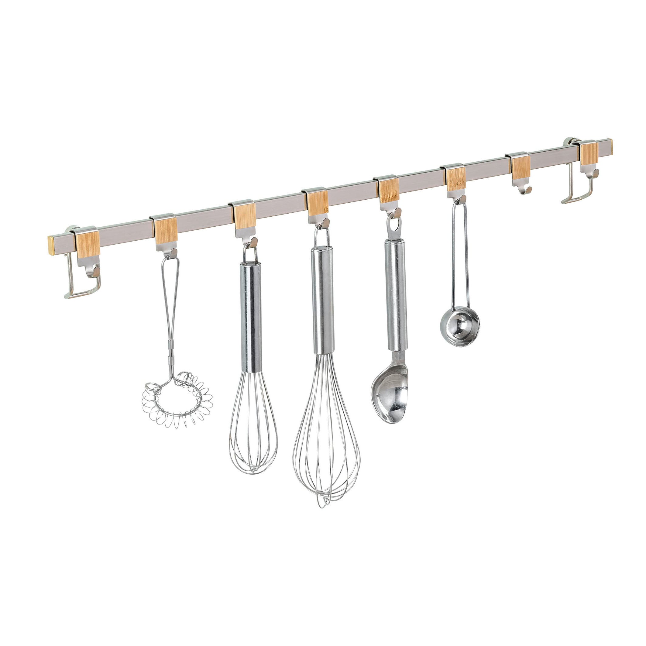 Inserti in bambu'. Ideale per creare ordine per gli utensili da cucina.. Inclusi 8 ganci in acciaio inox spazzolato con bambù. look pregiato. viti incluse. possibile fissaggio alternativo senza trapano (in commercio disponibile separatamente).