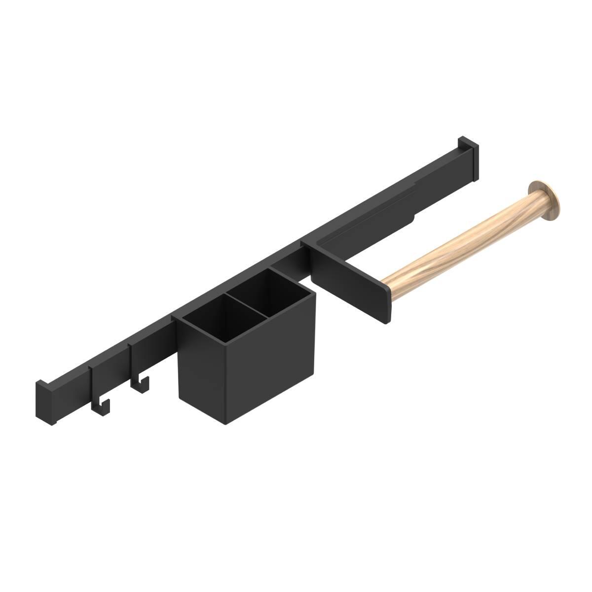 Barra sottopensile in alluminio nero. Pratika di nome e di fatto. Ma non solo: bella, colorata, decisamente pop! E' in grado di rendere la tua cucina uno spazio confortevole e funzionale, grazie ai contenitori rimovibili che puoi decidere di appendere sulla barra metallica o lasciare in tavola, pronti all'uso.. Ideale per organizzare la parete della cucina con un fissaggio stabile e sicuro. Possibilità di fissaggio senza trapano (in commercio disponibile separatamente)
