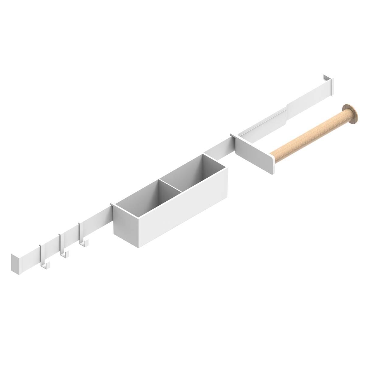 Barra sottopensile in alluminio bianco. Pratika di nome e di fatto. Ma non solo: bella, colorata, decisamente pop! E' in grado di rendere la tua cucina uno spazio confortevole e funzionale, grazie ai contenitori rimovibili che puoi decidere di appendere sulla barra metallica o lasciare in tavola, pronti all'uso.. Ideale per organizzare la parete della cucina con un fissaggio stabile e sicuro. Possibilità di fissaggio senza trapano (in commercio disponibile separatamente)