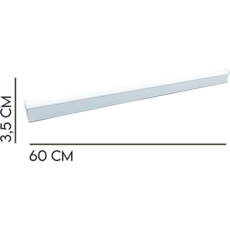 Il tubo LED integrato non necessita di plafoniera, ma si installa direttamente a soffitto, a parete, su scaffali o come sotto pensile in maniera rapida e semplice. Garantisce il miglior rapporto qualità/prezzo del mercato, garantendo quindi affidabilità e convenienza. Ideale per negozi, uffici, abitazioni e per molte altre applicazioni ! Le numerose certificazioni, la qualità dei componenti utilizzati e uniti all'efficienza della tecnologia LED assicurano consumi ridotti e una luminosità nitida e piacevole. Questo tubo sostituisce le vecchie reglette con tubo al neon, con un un notevole risparmio in bolletta e una qualità luminosa molto superiore. I tubi integrati sono collegabili l'uno all'altro tramite gli appositi connettori, fino ad un massimo di 9 tubi installati consecutivamente. Caratteristiche 8W Lunghezza: 40 cm: Potenza 8W Alimentazione 220/240v Flusso luminoso: 650Lm Apertura fascio luminoso: 180° Temperatura luce: luce calda (3000k), luce naturale (4000K), luce fredda