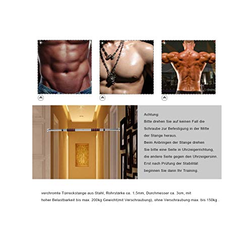 Con questa barra è possibile allenarsi comodamente a casa, come trazioni, addominali, ecc. Inoltre può essere utilizzata anche per appendere un sacco da boxe