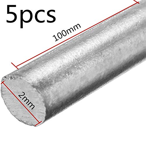 Barra di Zinco Anodo Sacrificale di Zinco Fine Anodo di Zinco - Lungo - Rotondo 5Pcs Lunghezza Diametro da 100 mm da 2 mm A 8 mm,2mm