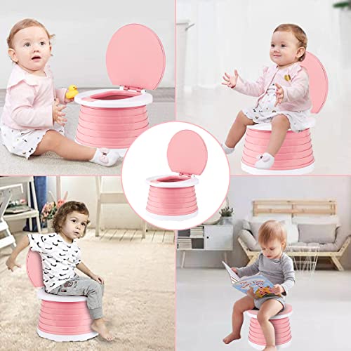 Barrageon Bambino Toilette Pieghevole WC Portatile Secchio Esterni Viaggio Campeggio Vasino Ragazza Ragazzo Sedia Vasino Facile Pulire Trasportare (Rosa)
